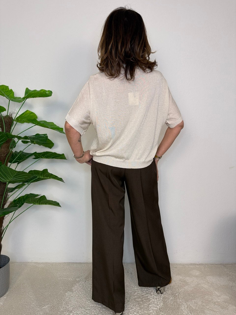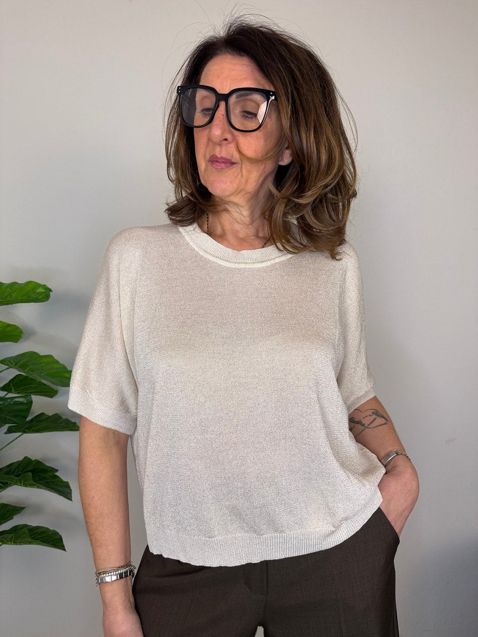 Round neck sweater in stretchy viscose yarn fabric, slightly batwing sleeves, slightly shorter in front and longer in back, boxy cut, fits sizes 46 to 50