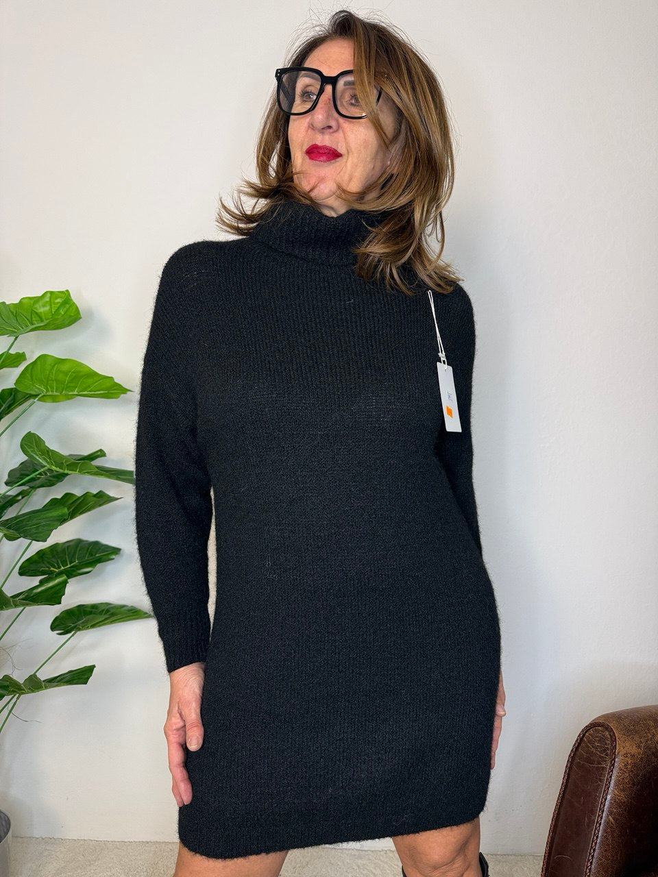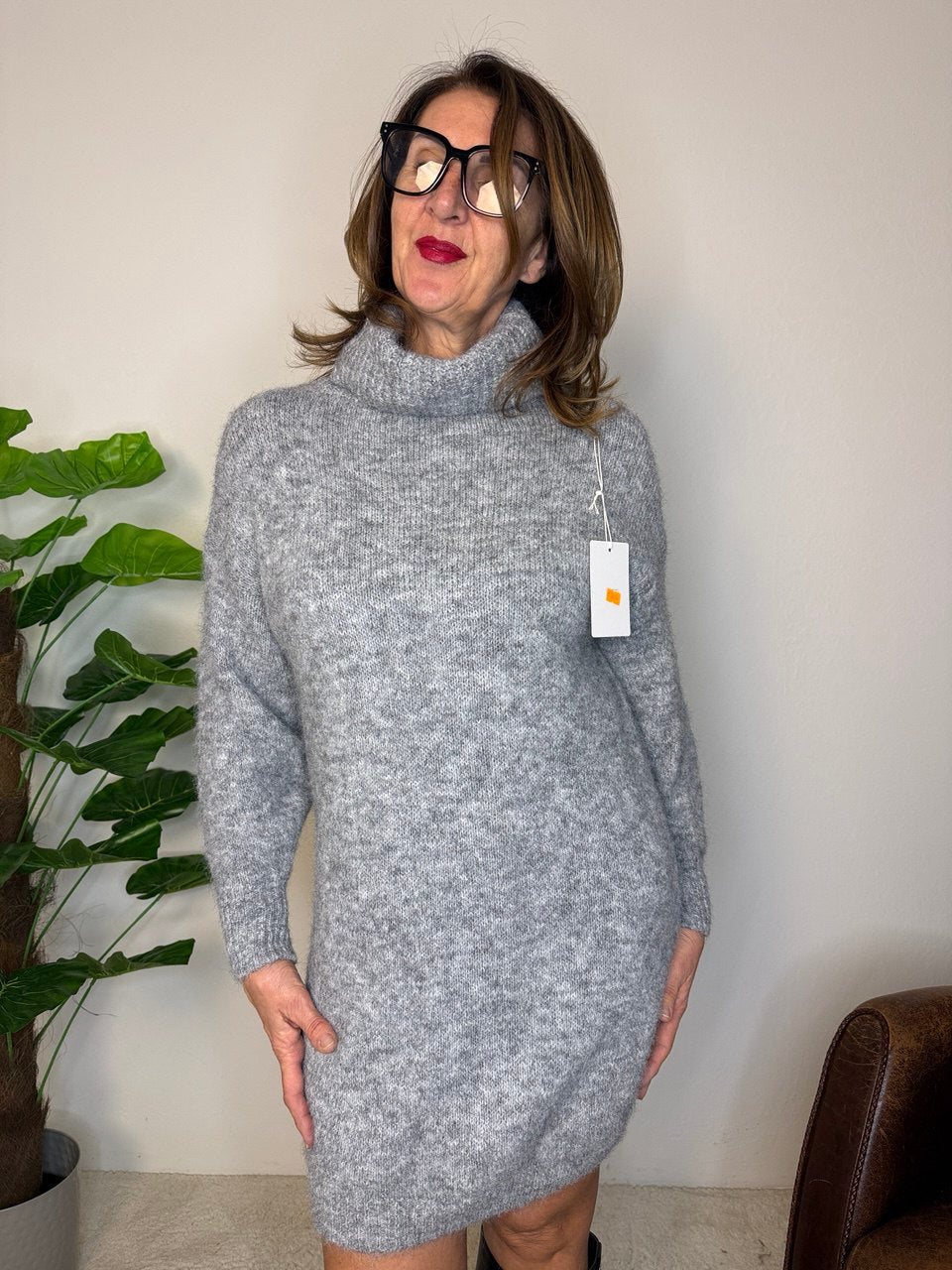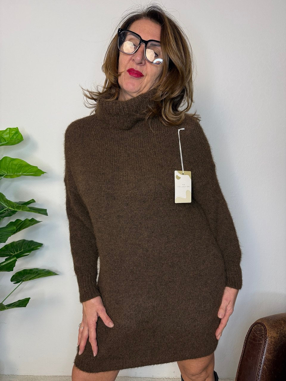 Abito in tessuto misto lana elasticizzato con collo a ciambella, giro manica che scende leggermente, costine di rifinitura sul fondo, tessuto super soft, caldo e soffice, da usare sia come abito che come maxi maglione, vestibilità dalla taglia 44 alla 48