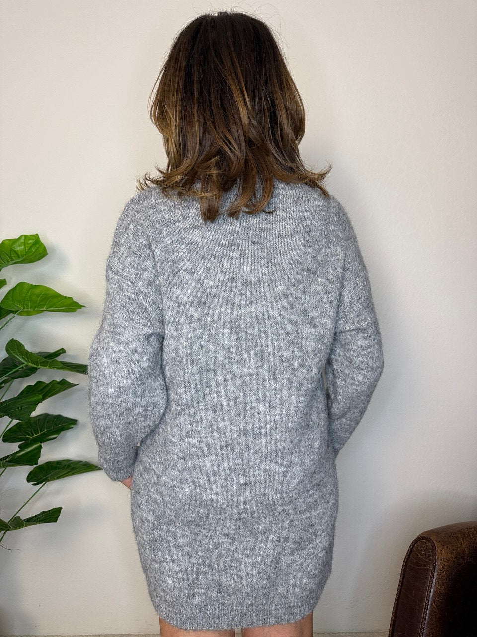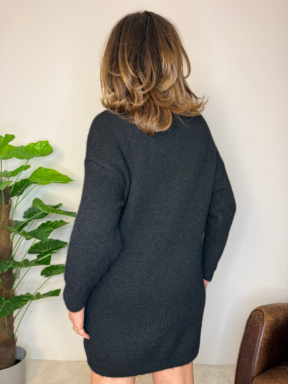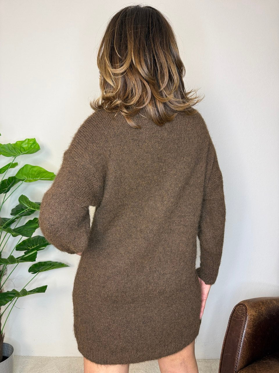 Abito in tessuto misto lana elasticizzato con collo a ciambella, giro manica che scende leggermente, costine di rifinitura sul fondo, tessuto super soft, caldo e soffice, da usare sia come abito che come maxi maglione, vestibilità dalla taglia 44 alla 48