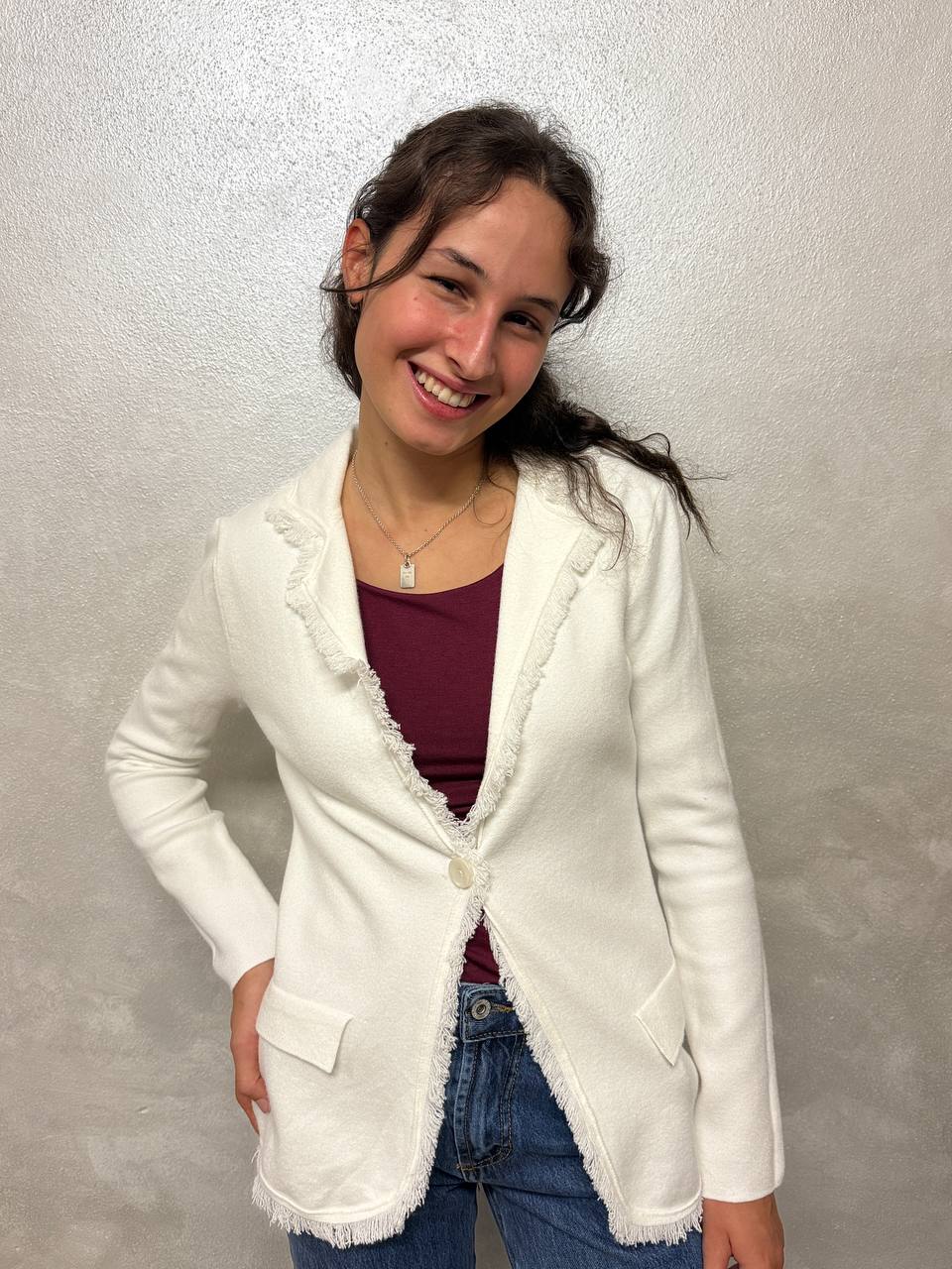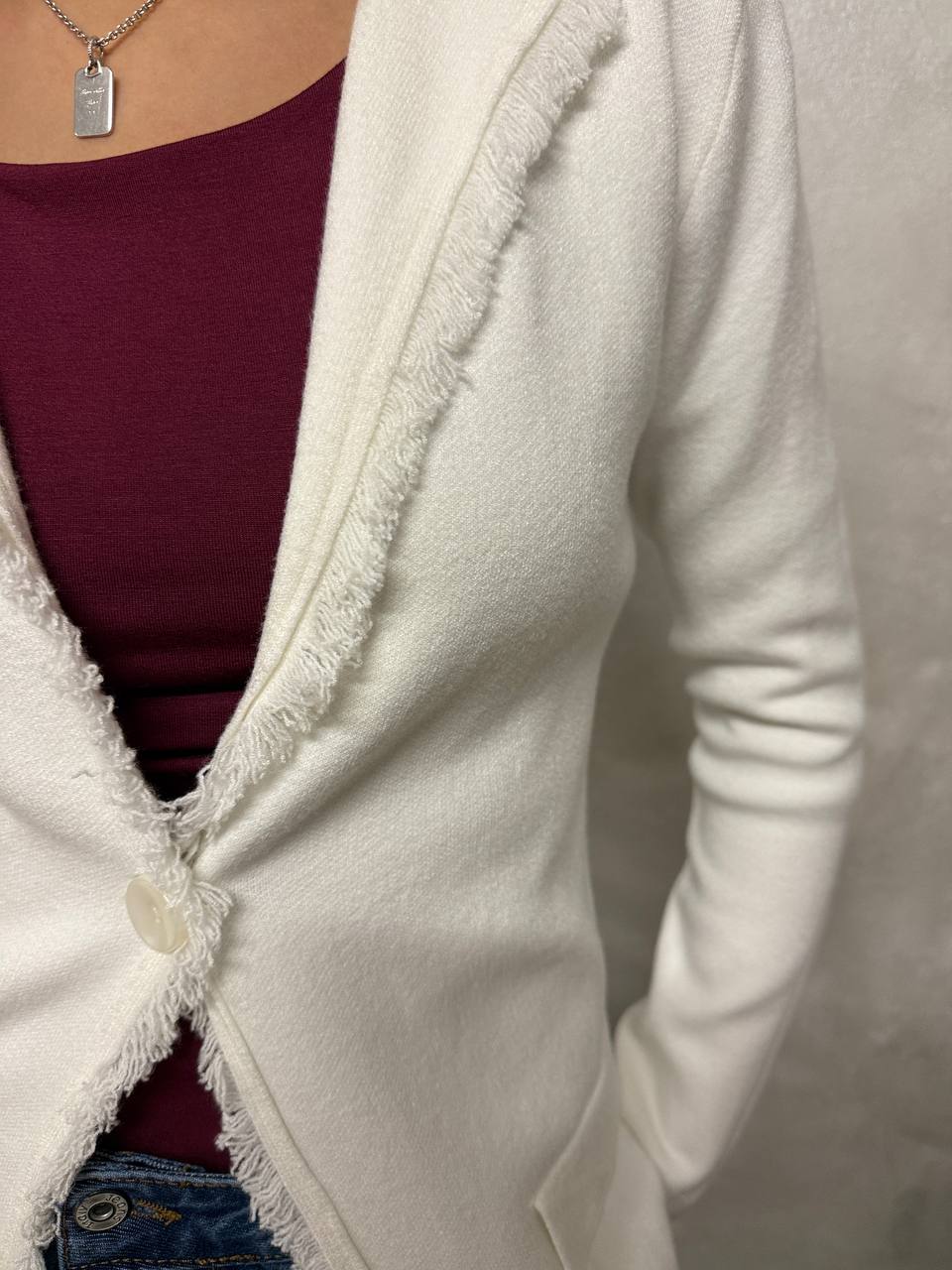 Giacca con collo a sport, chiusura con un bottone, pattine di bellezza, sfiancata, slim