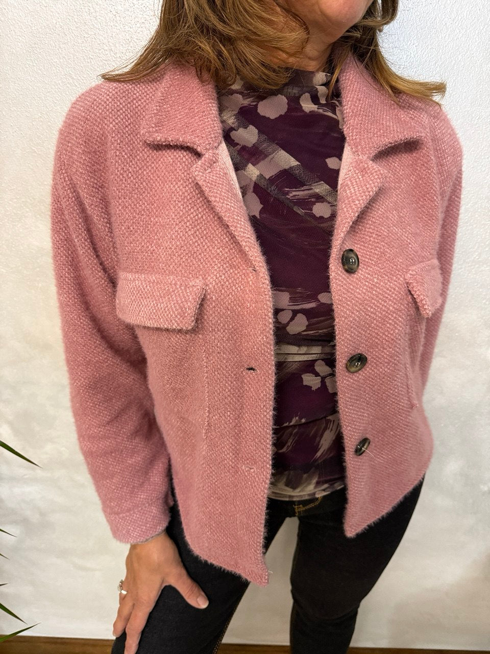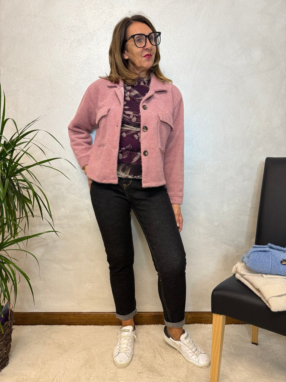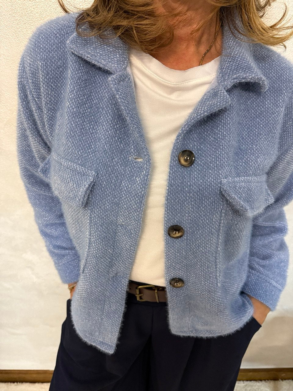 Giacca con colletino, chiusura a bottoni, tasche sul davanti, bottone nei polsini, tessuto soffice e confortevole, vestibilità leggermente morbida