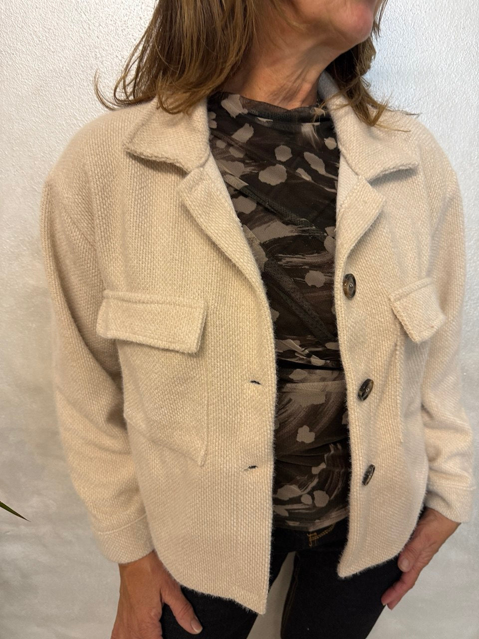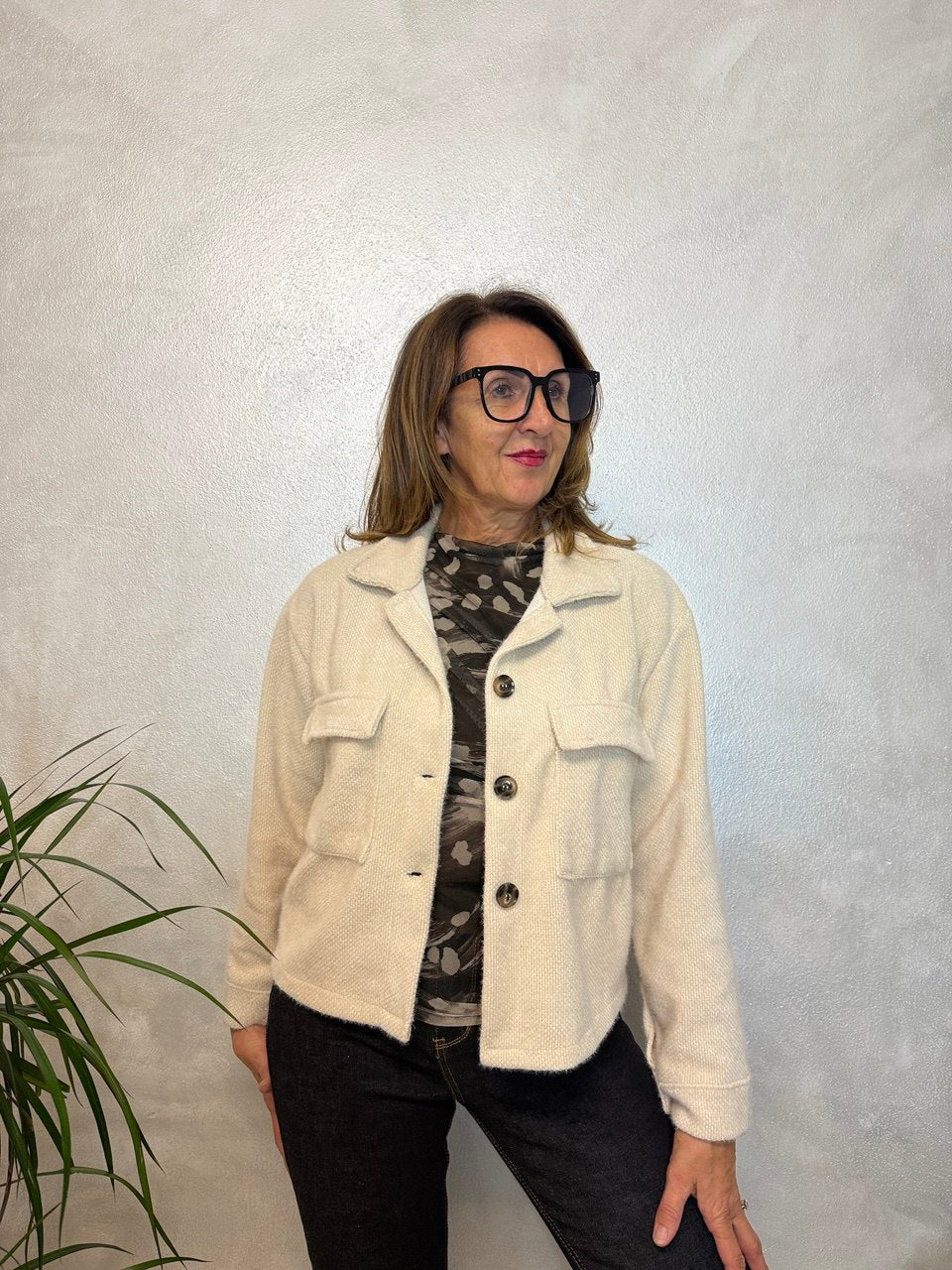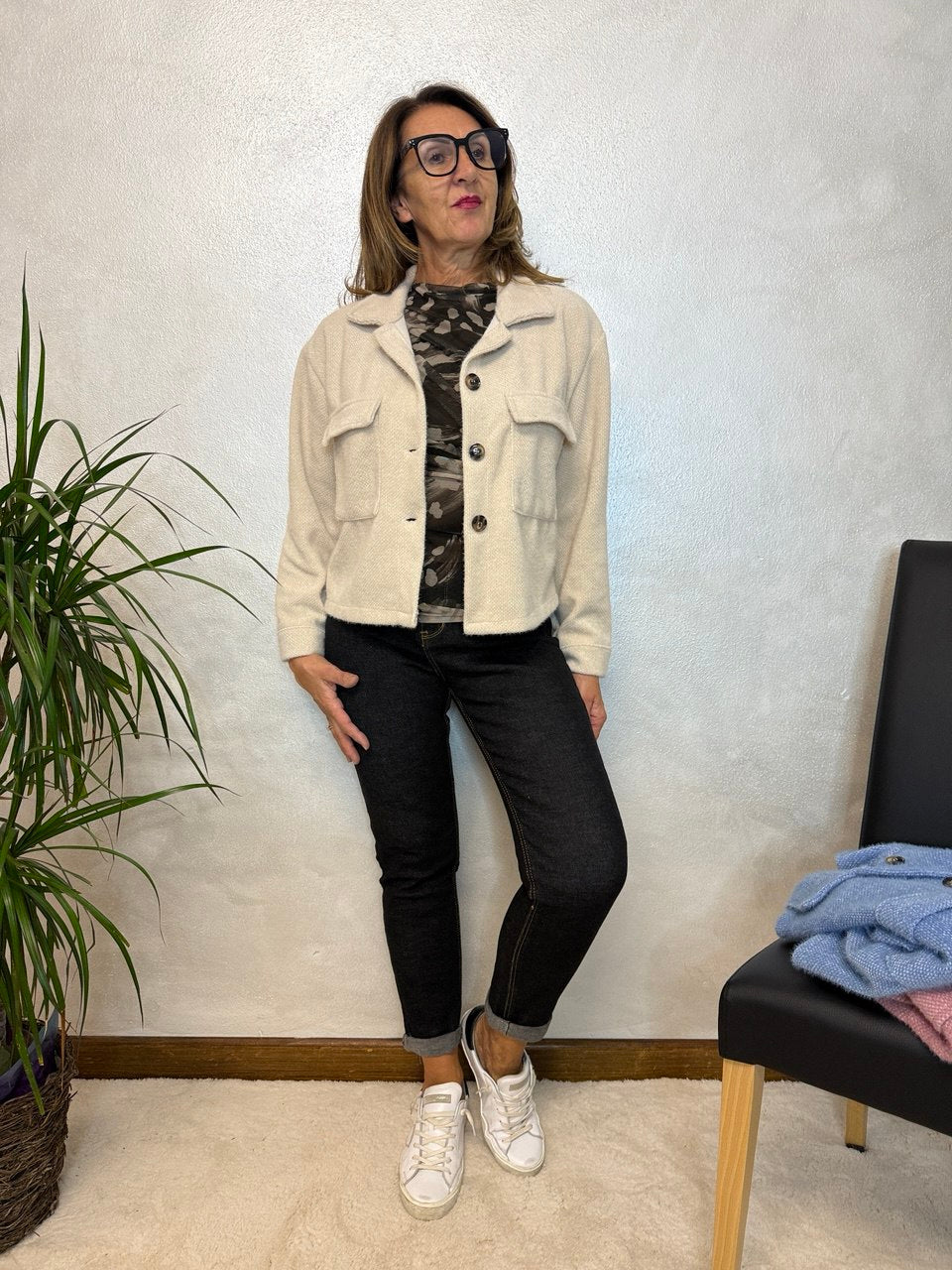 Giacca con colletino, chiusura a bottoni, tasche sul davanti, bottone nei polsini, tessuto soffice e confortevole, vestibilità leggermente morbida