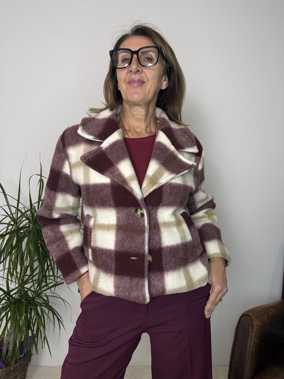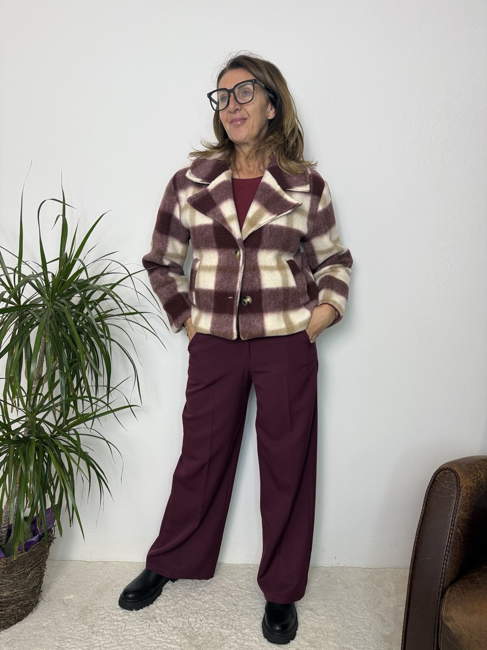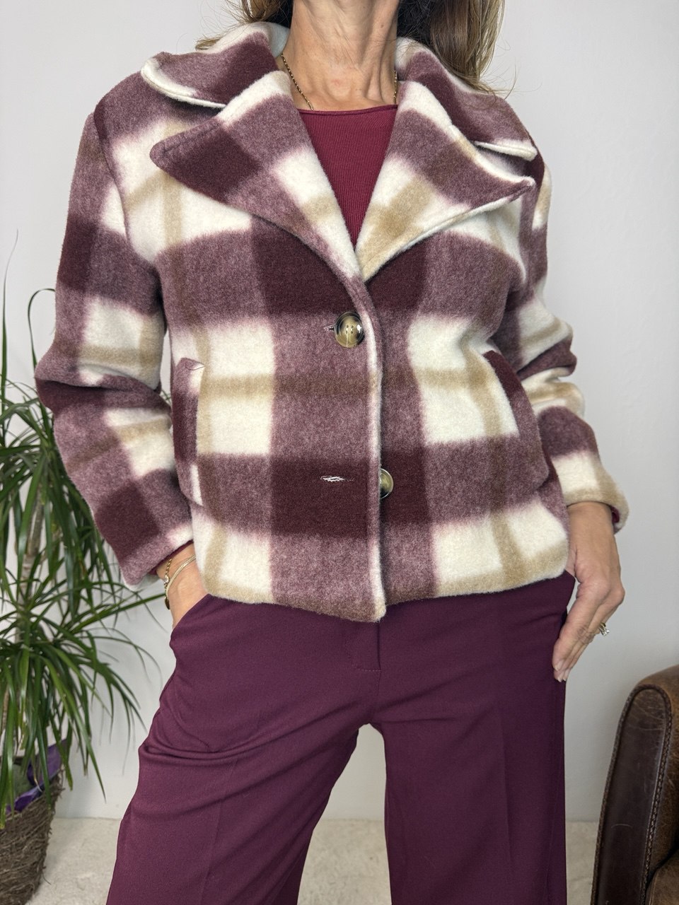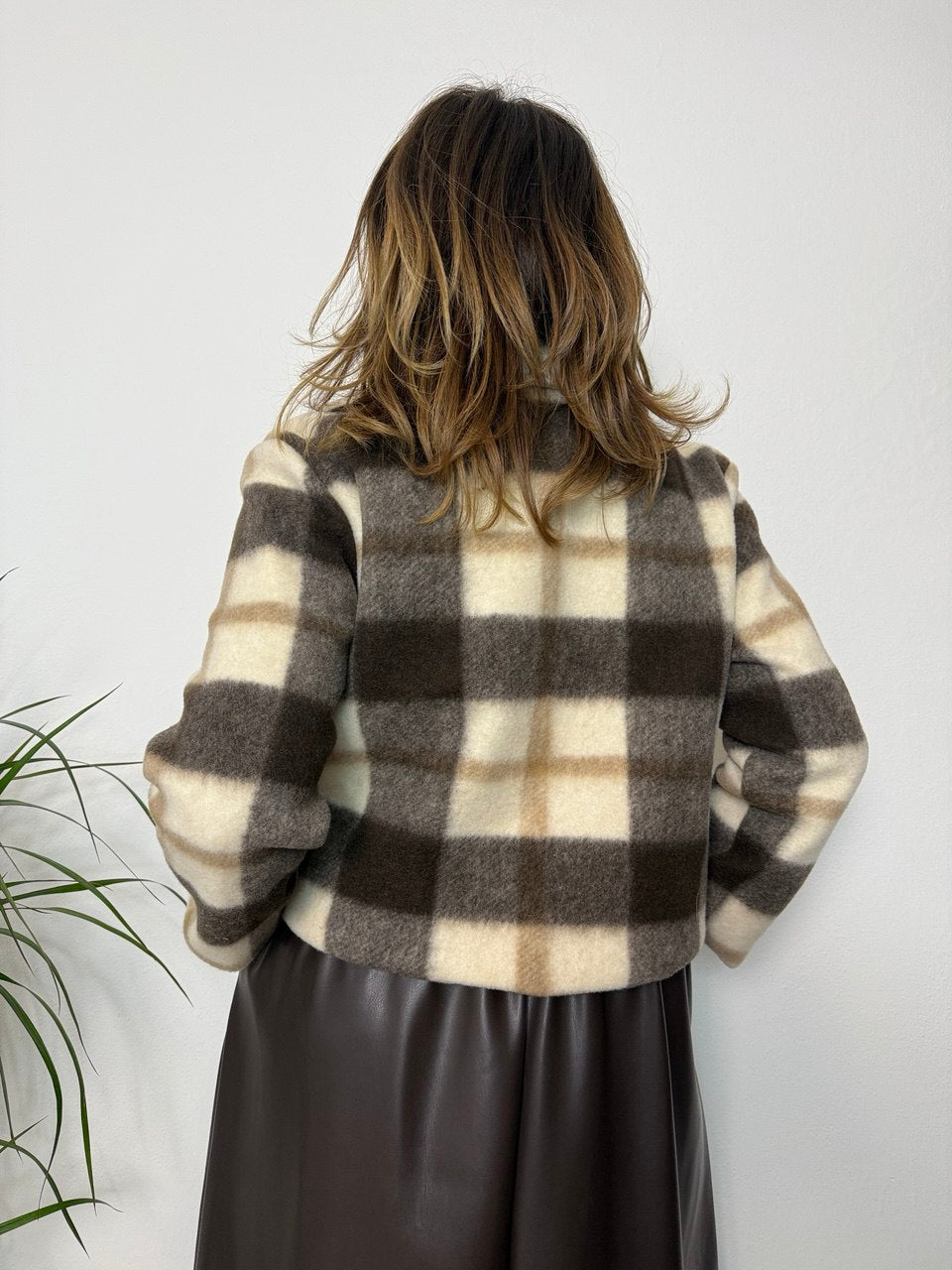 Giacca giubbino foderata con collo sport, tessuto panno pesante, tasche, chiusura a due bottoni, vestilibità dalla taglia 42 alla 46