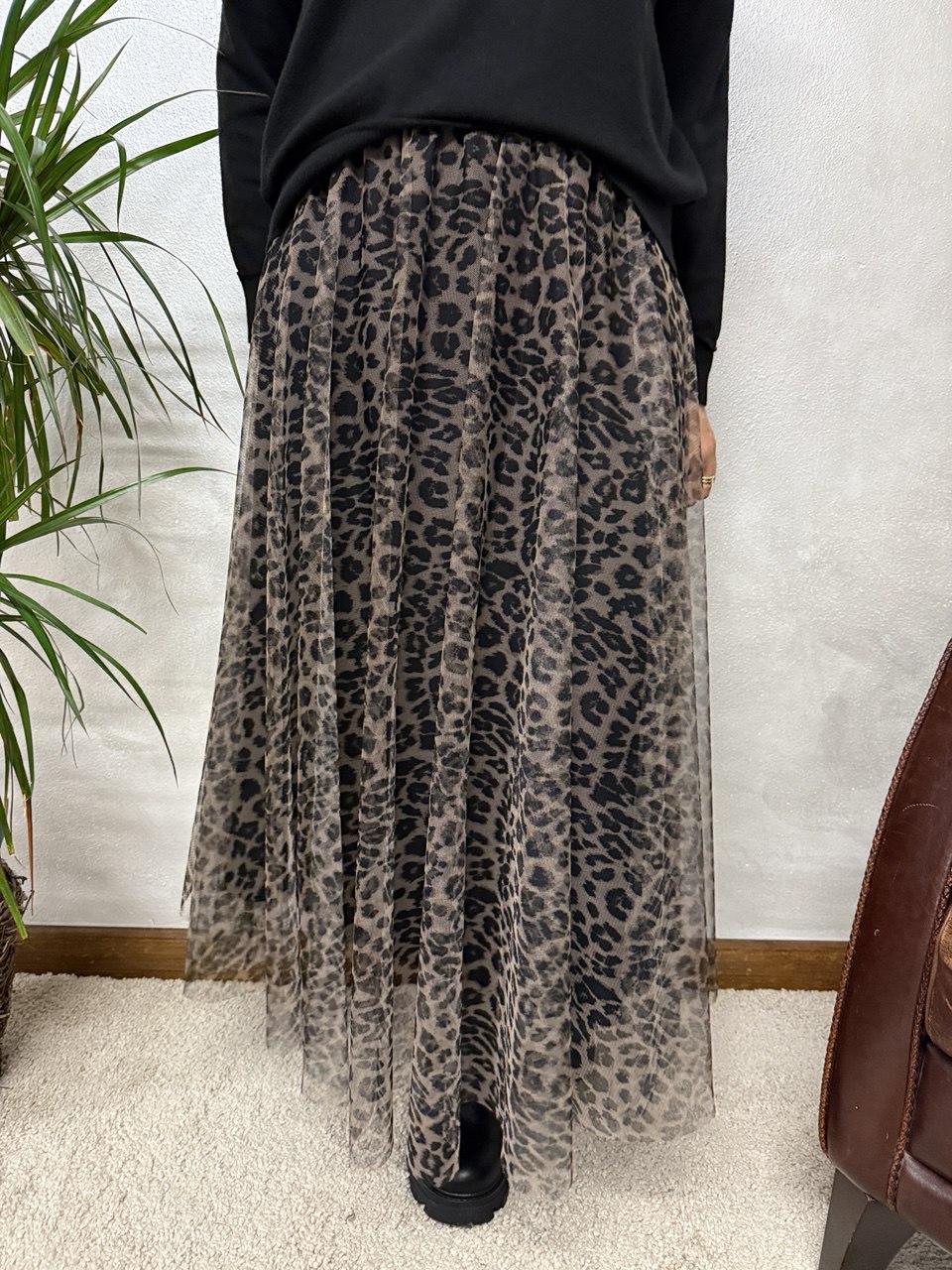Gonna in microrete con fodera in viscosa, elastico in vita, vestibilità morbida dalla taglia 44 alla 50, estensione elastico in vita fino a 120cm
