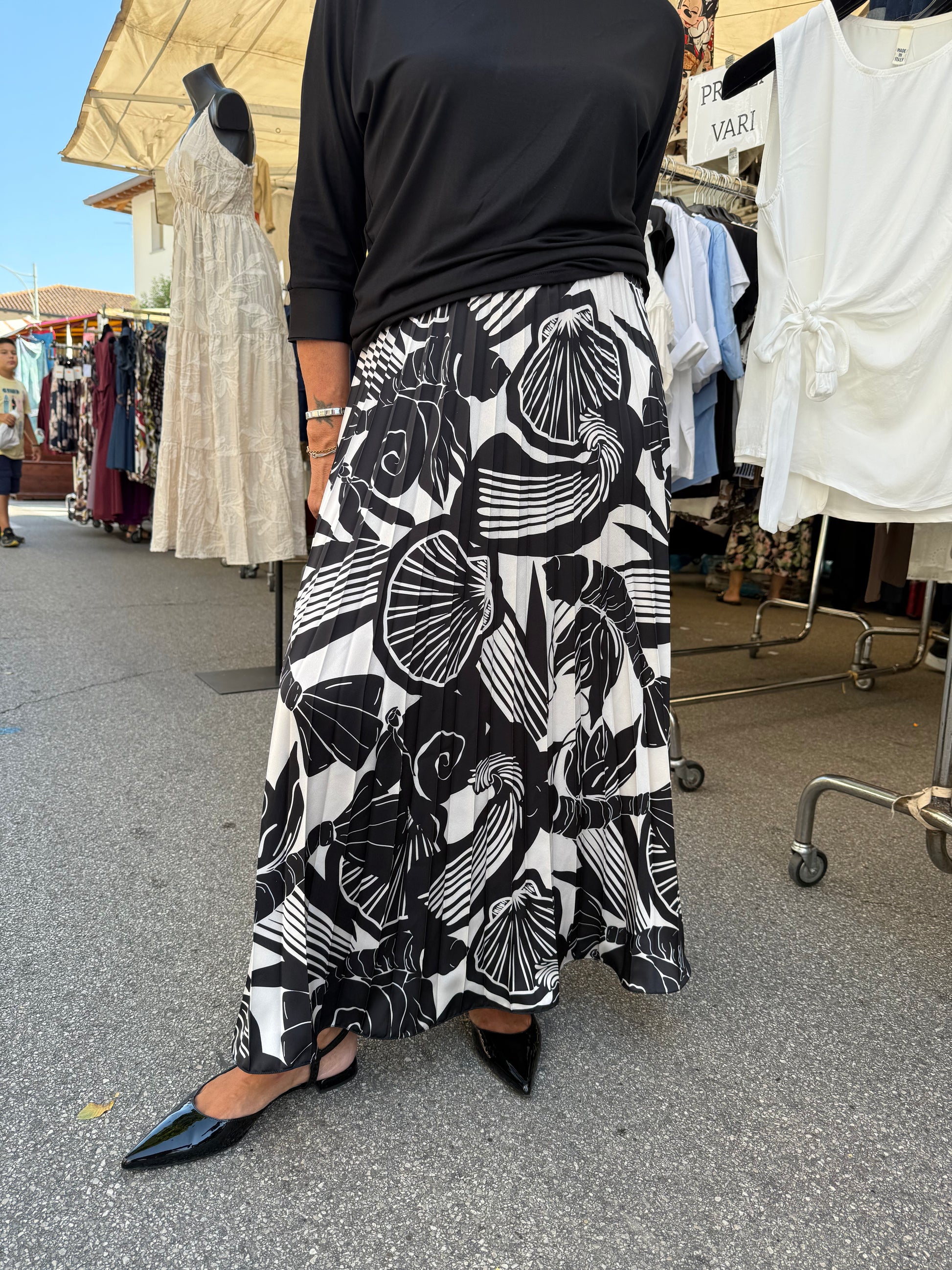 Gonna plissettata con elastico in vita, lunga fino ai piedi, molto d'effetto