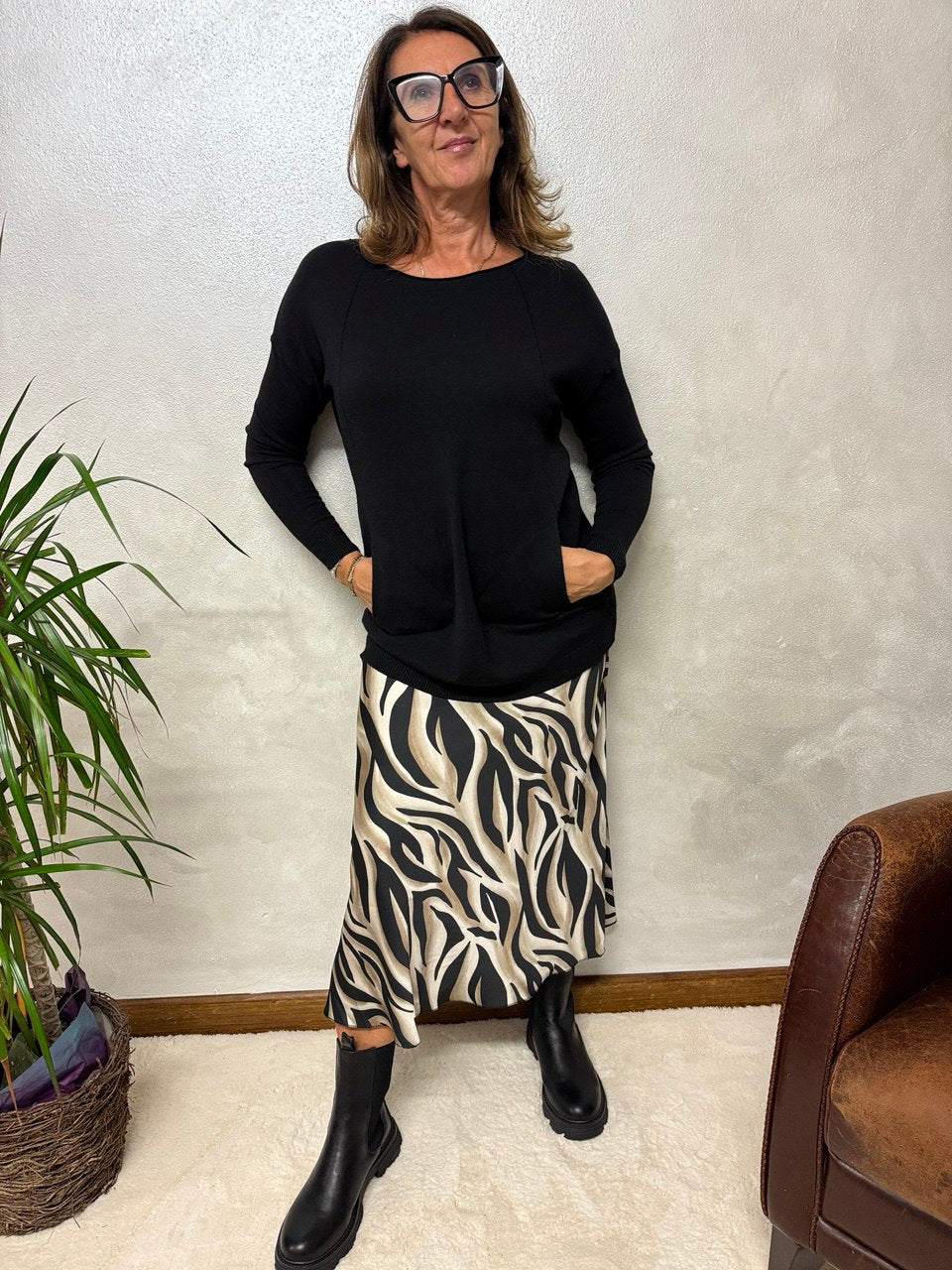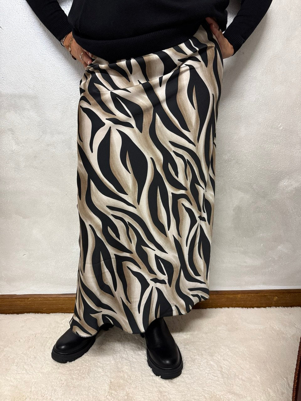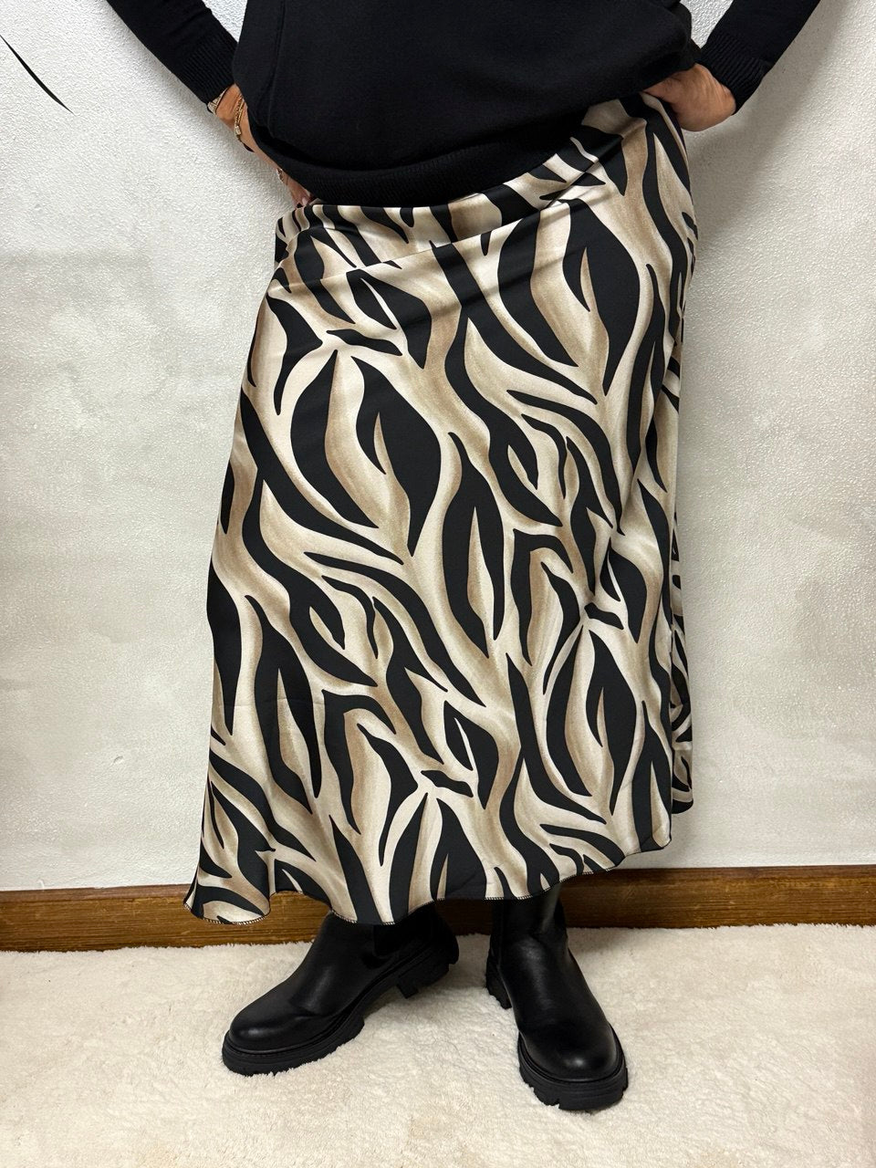 Gonna in raso svasata con elastico in vita, orlo vivo, effetto lucido, molto alla moda, vestibilità dalla taglia 42 alla 46
