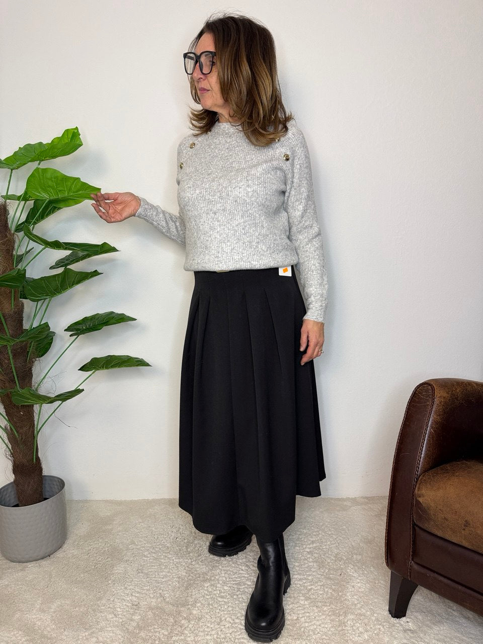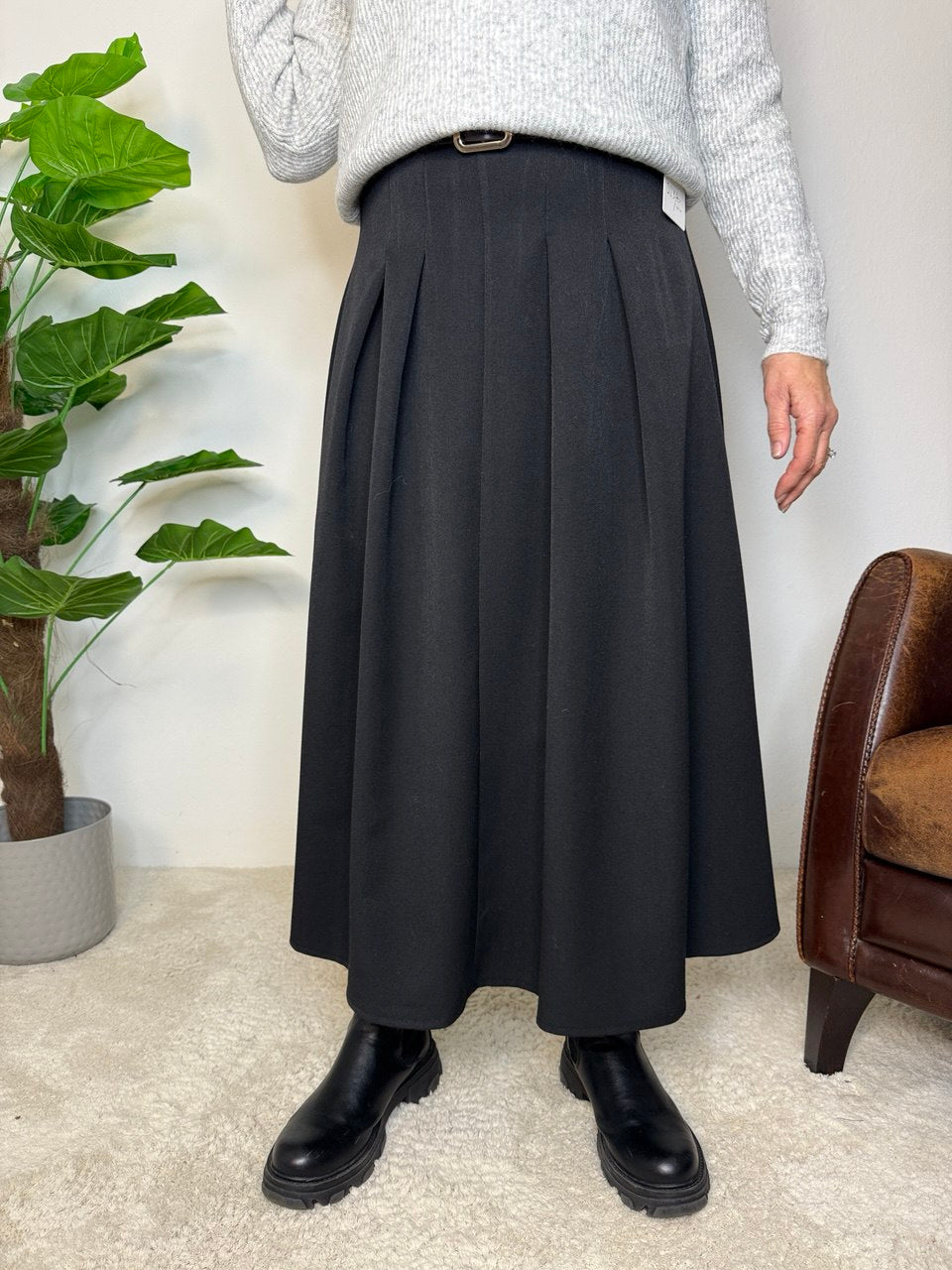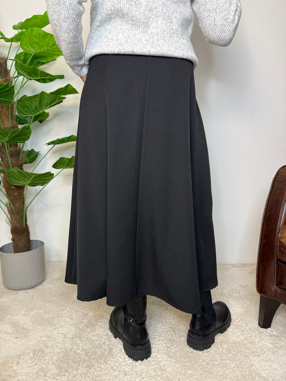 Gonna con elastico in vita, canule sul davanti e liscia sul retro, tessuto di mezza stagione molto bello, vestibilità dalla taglia 42 alla 46