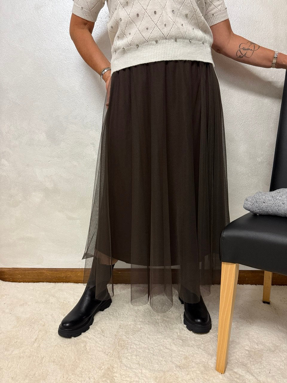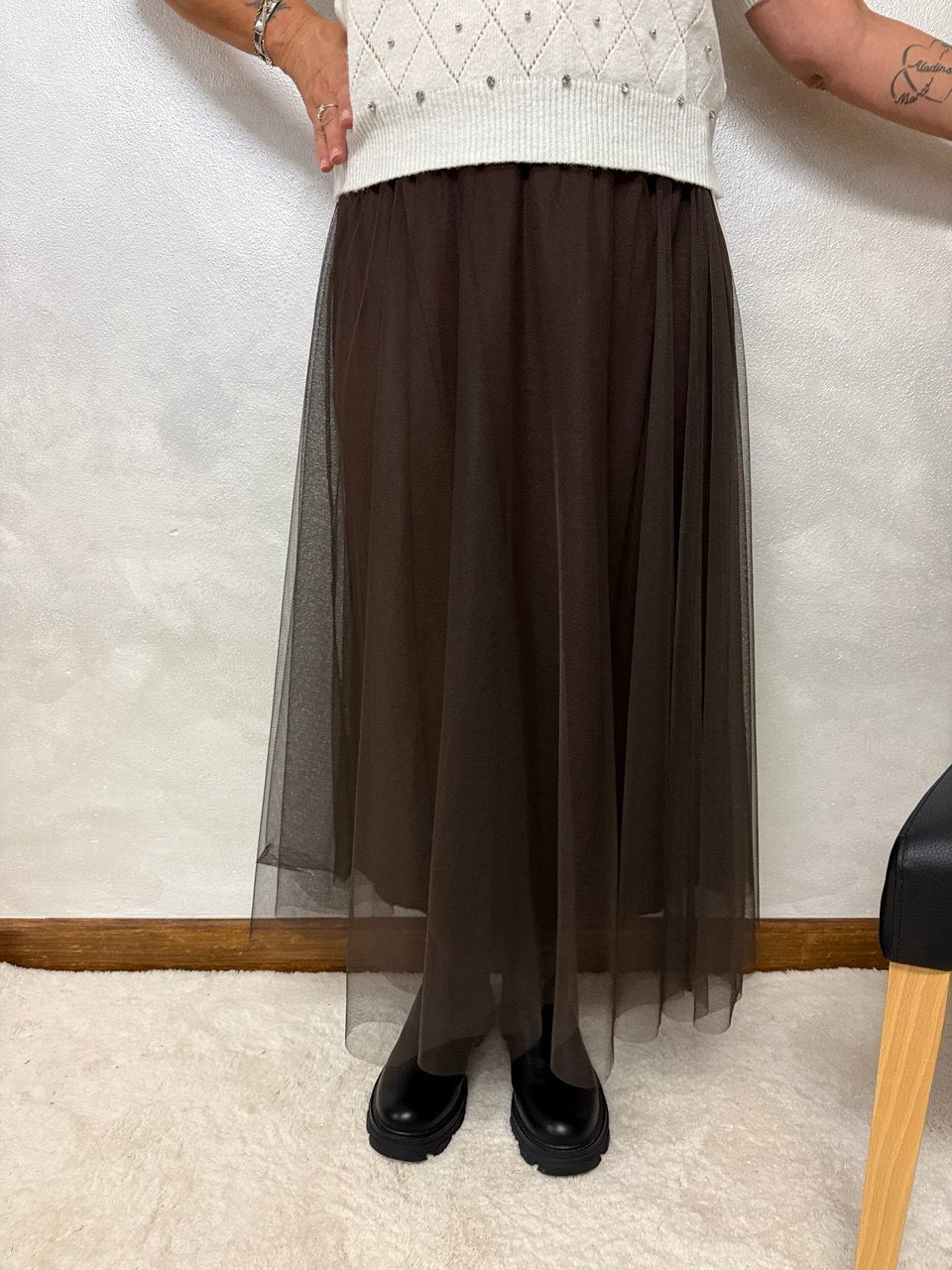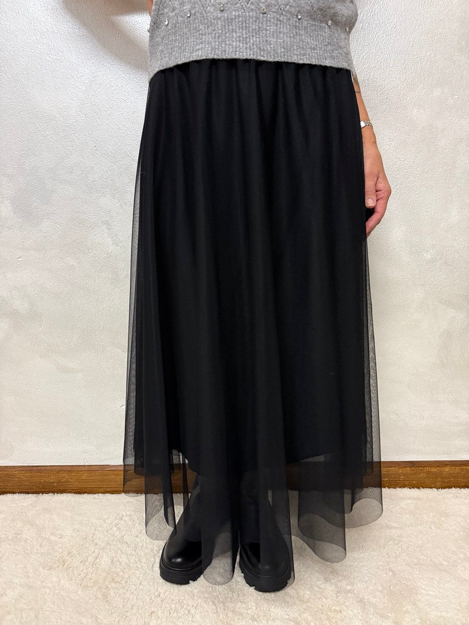 Gonna in microrete con fodera in viscosa, elastico in vita, vestibilità morbida