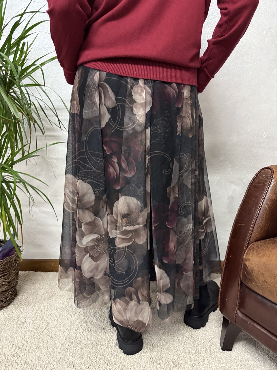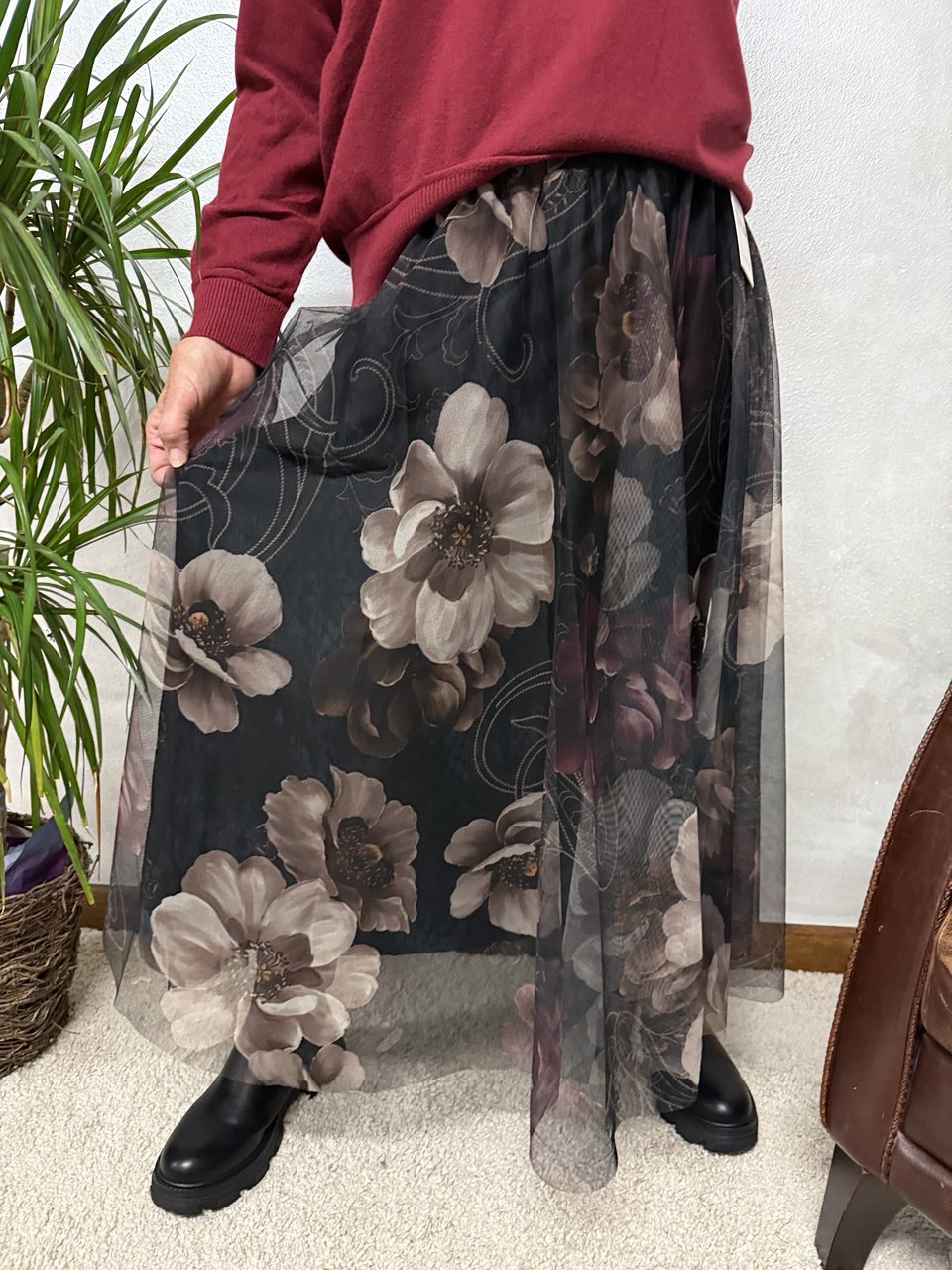 Gonna in microrete con fodera in viscosa, elastico in vita, vestibilità morbida dalla taglia 44 alla 50, estensione elastico in vita fino a 120cm