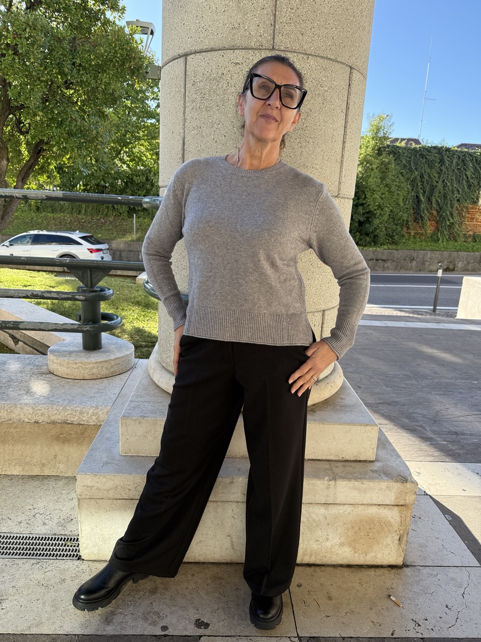 La modella è alta 170 cm e solitamente veste la taglia 46(L)