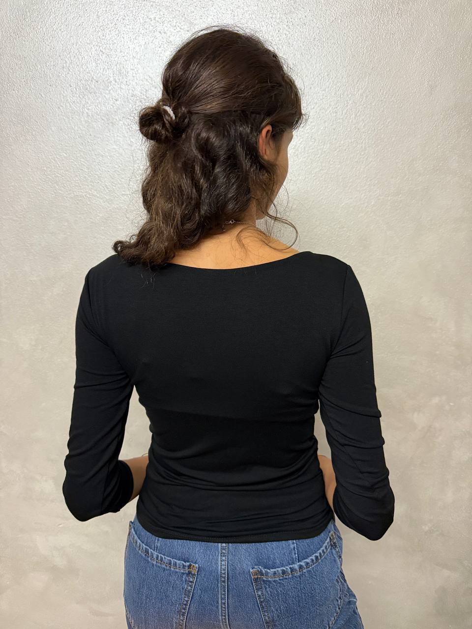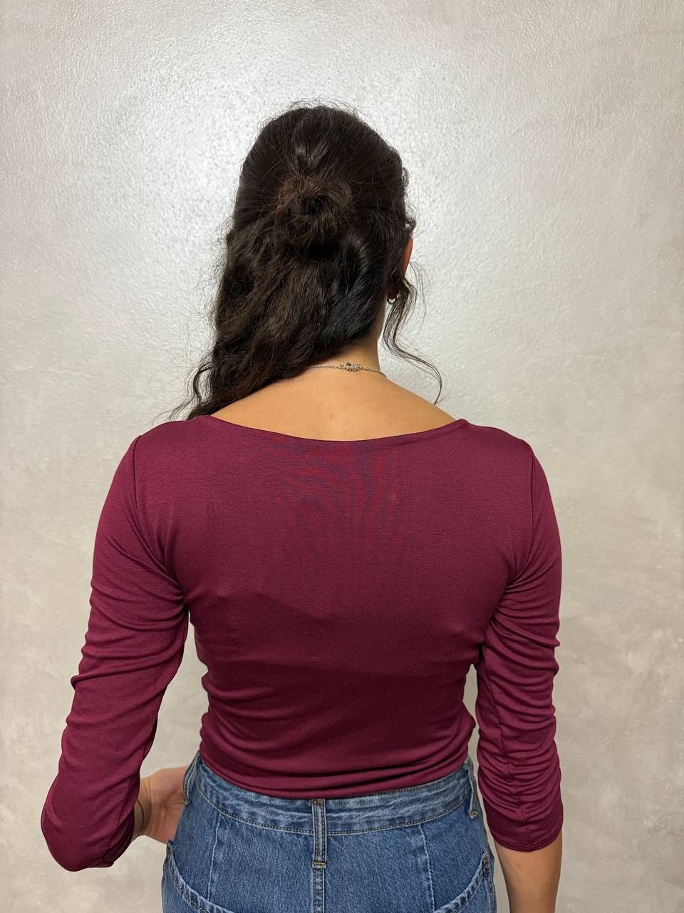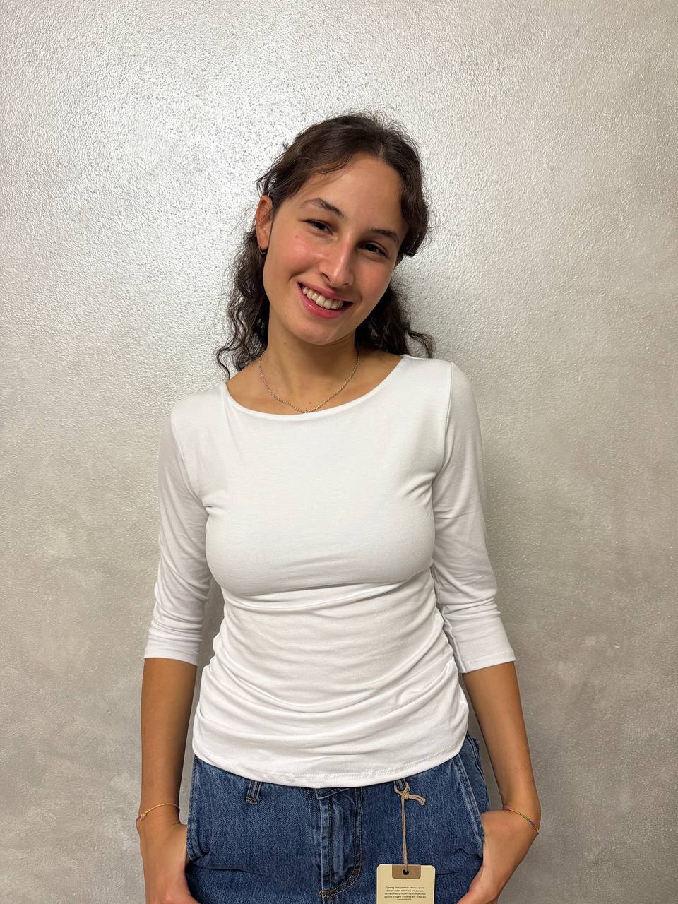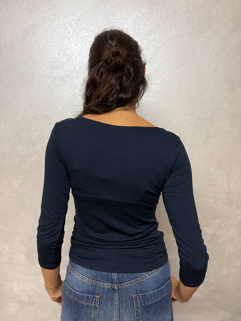 Maglietta in viscosa elasticizzata a girocollo, manica a tre quarti, vestibilità slim, ideale anche come sottogiacca