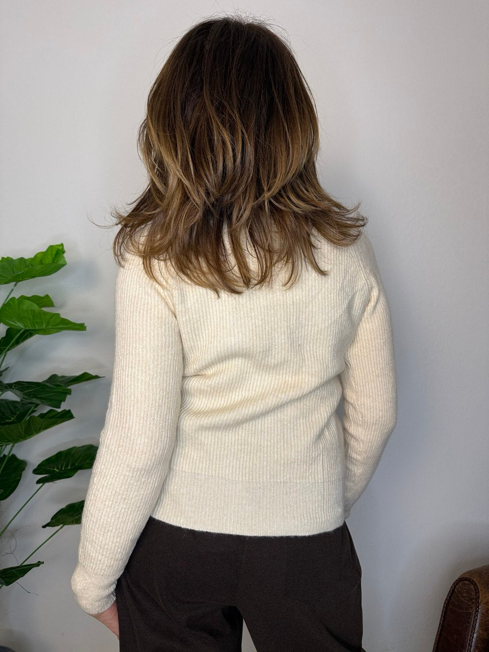 Maglione in misto lana girocollo a costine, maniche raglan, bottoncini di bellezza dorati, vestibilità leggermente slim, tessuto super morbido e comfort, vestibilità dalla taglia 42 alla 46