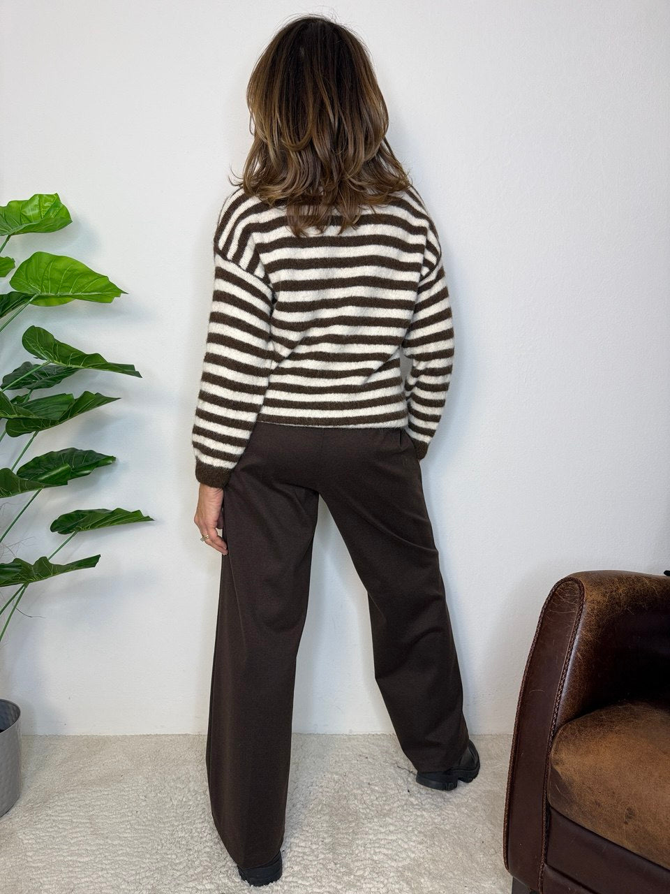 Maglione con tre bottoni e colletto, tessuto misto lana elasticizzato, elastico sul fondo da rimborsare, giro manica che scende leggermente, modello molto alla moda, vestibilità dalla taglia 44 alla 48
