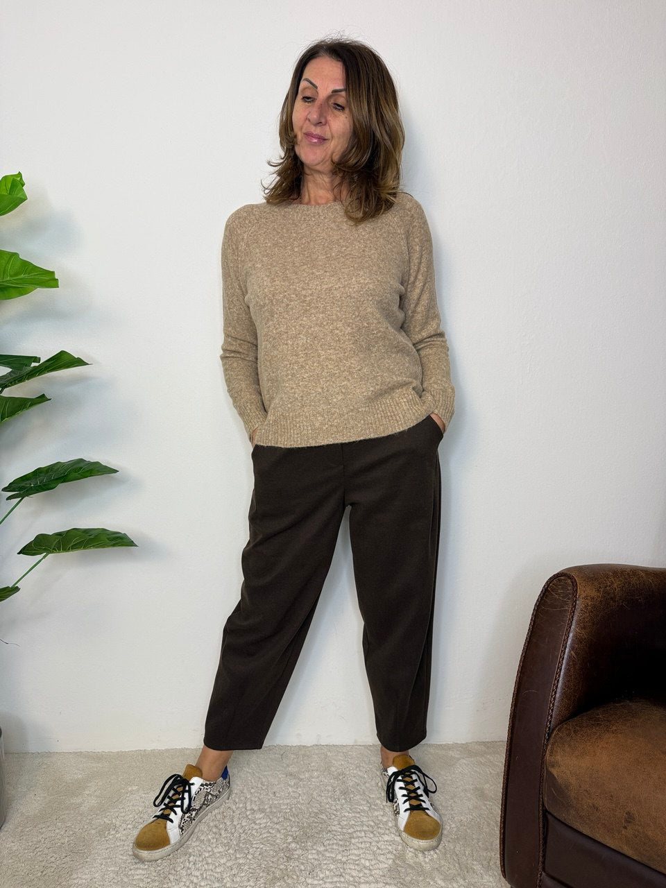 Maglione in tessuto misto lana a girocollo, manica raglan, taglio a scatoletta, vestibilità dalla taglia 46 alla 50