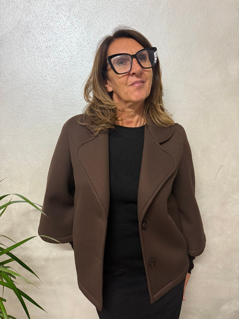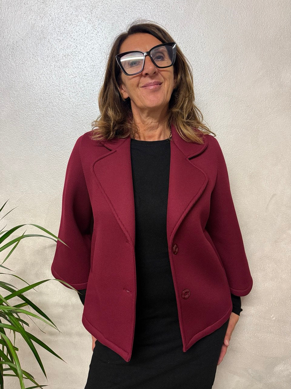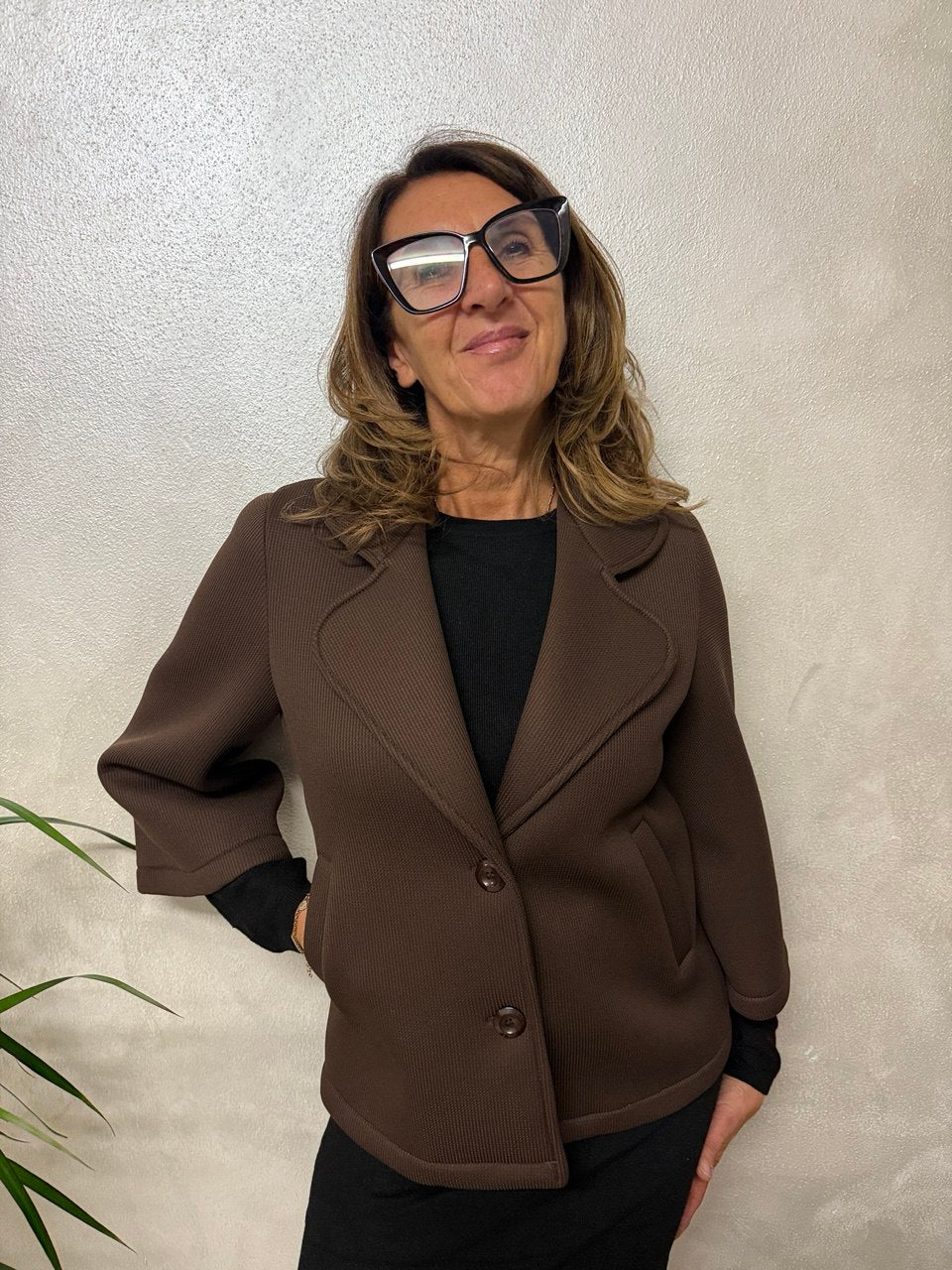 Neoprene con collo sport, chiusura a due bottoni, manica a 3/4, tasche, lunghezza primo fianco, vestibilità dalla taglia 42 alla 46