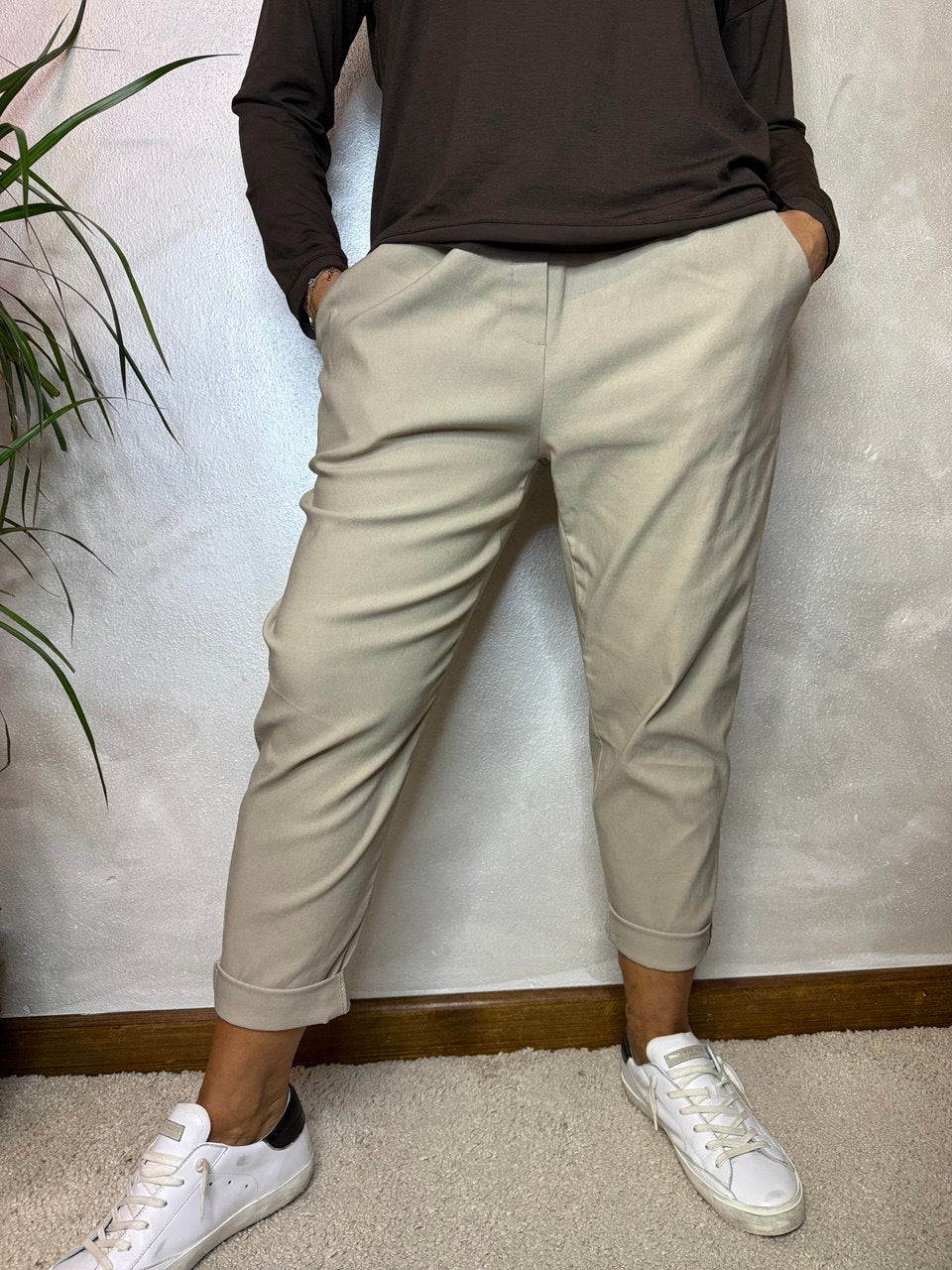 Pantalone con elastico in vita, presenta le tasche, tessuto super elasticizzato, vestibilità over