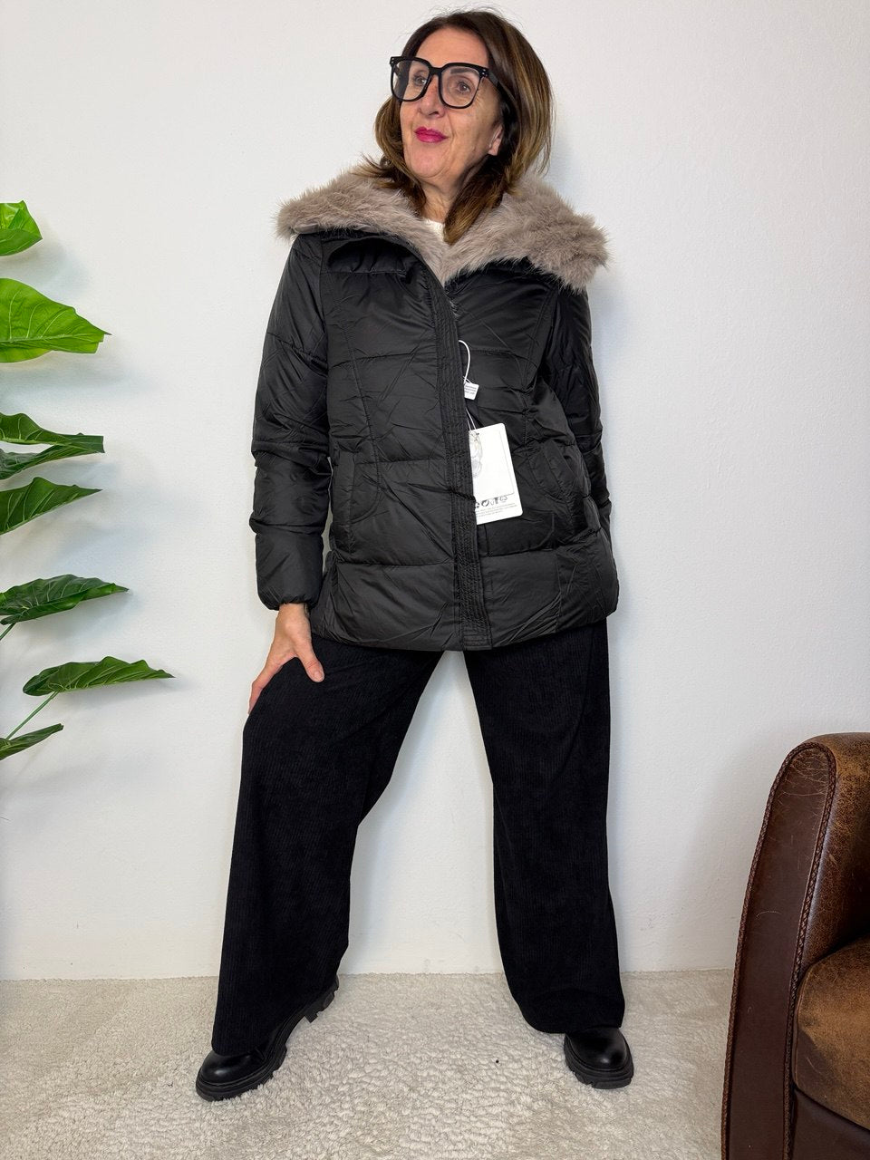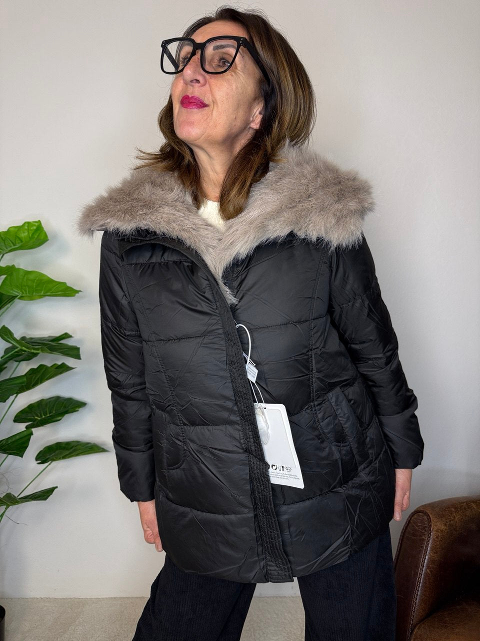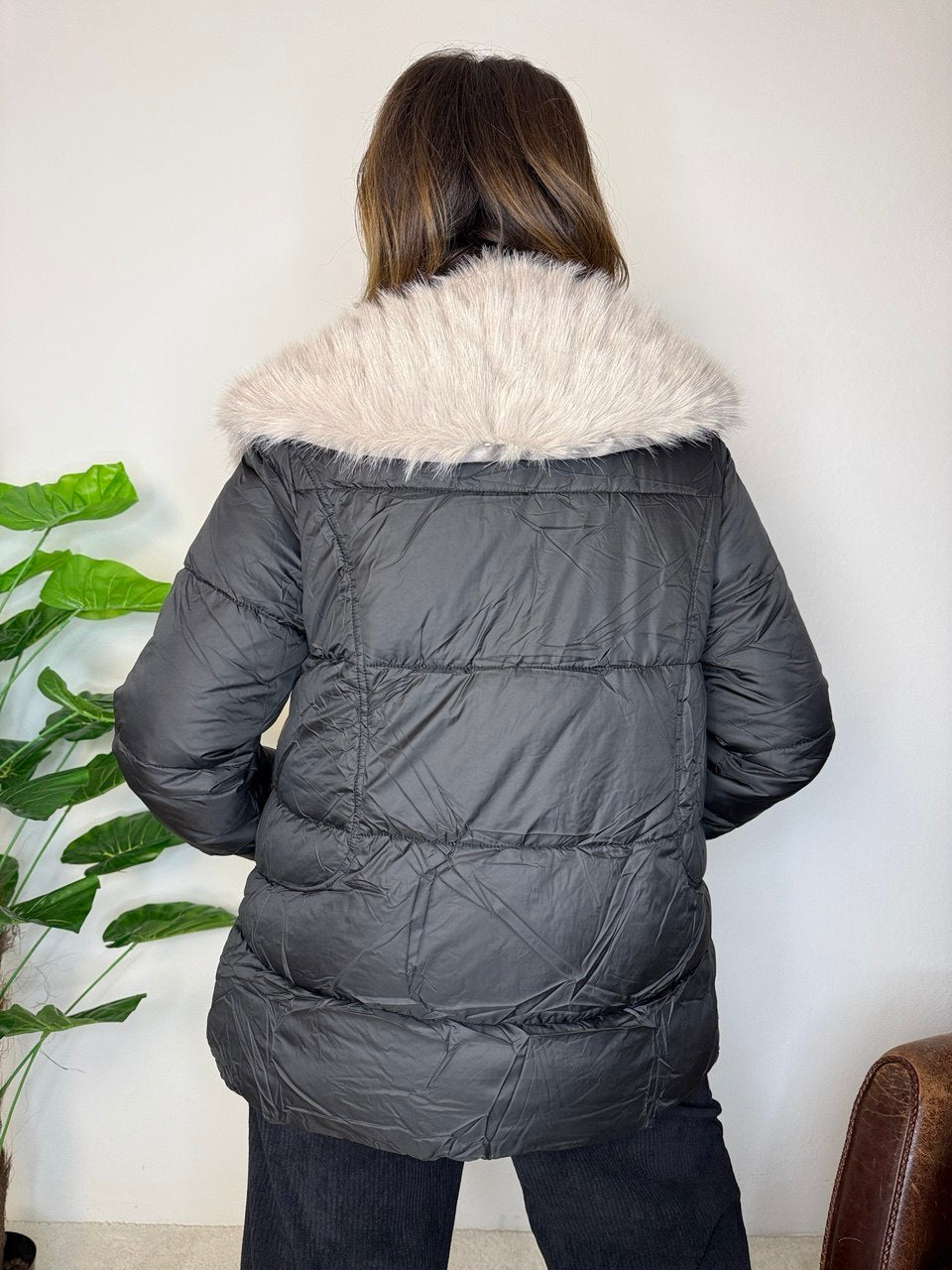Piumino con imbottitura di ovatta, pelliccia rimovibile, chiusura zip, tasche, leggermente svasato, vestibilità regolare