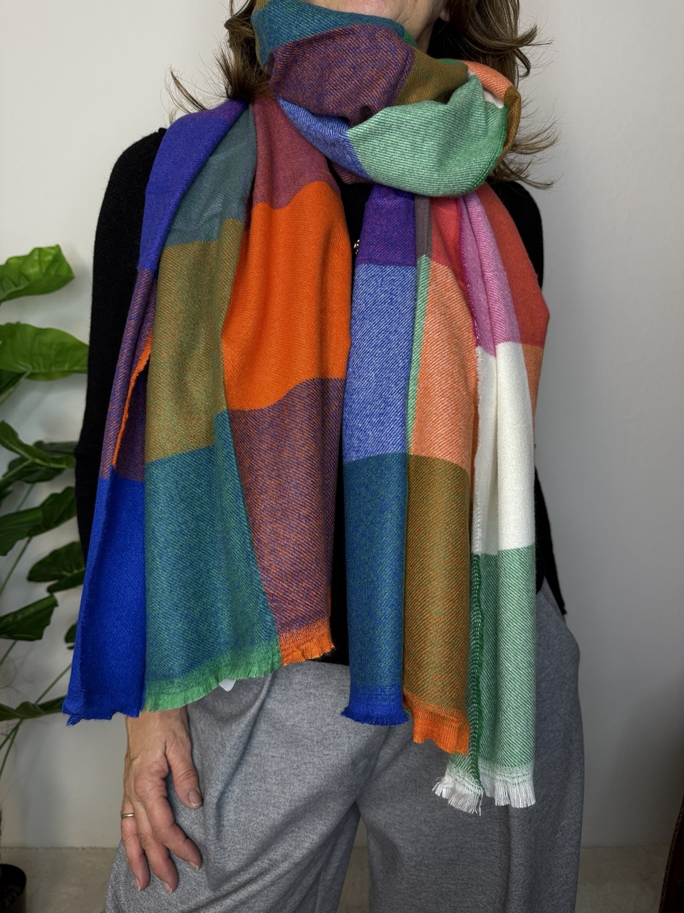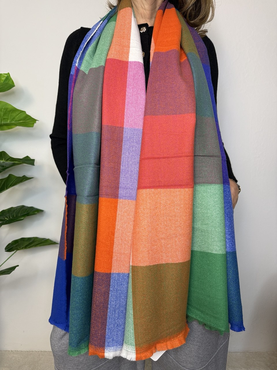 Sciarpa in 100% viscosa pesante a quadri multicolor