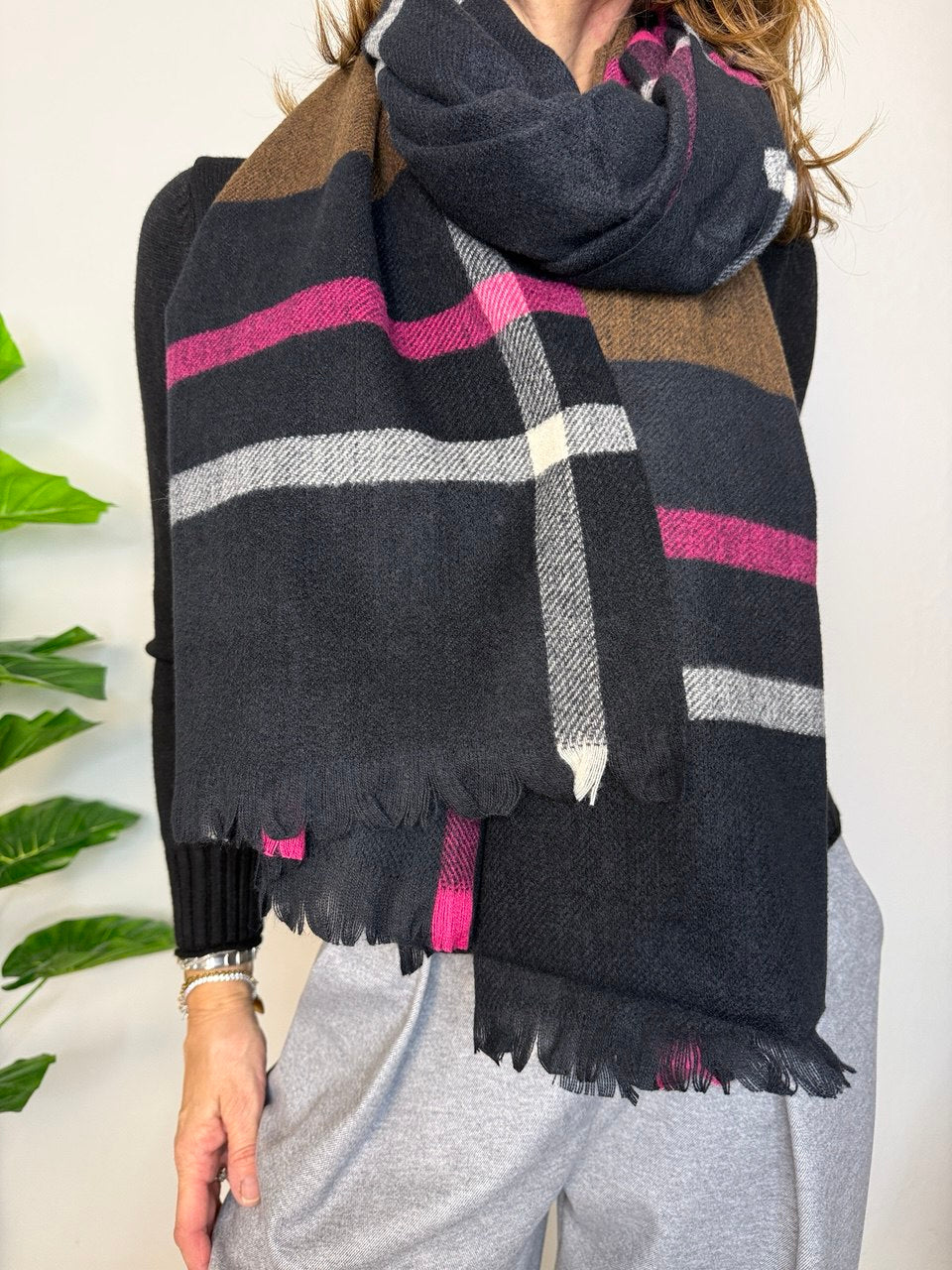 Sciarpa in 100% viscosa pesante, disegno scozzese